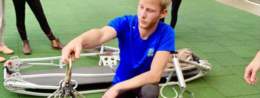 Florian Reindl zeigt die Vorbereitung zur Luftrettung