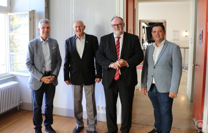 Clemens Damberger (2. von links) freut sich über die Gratulation von Stadtrat Prof. Dr. Gerhard Waschler, MdL (von links), Oberbürgermeister Jürgen Dupper und Bürgermeister Armin Dickl.