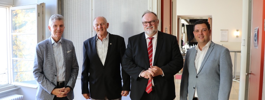 Clemens Damberger (2. von links) freut sich über die Gratulation von Stadtrat Prof. Dr. Gerhard Waschler, MdL (von links), Oberbürgermeister Jürgen Dupper und Bürgermeister Armin Dickl.