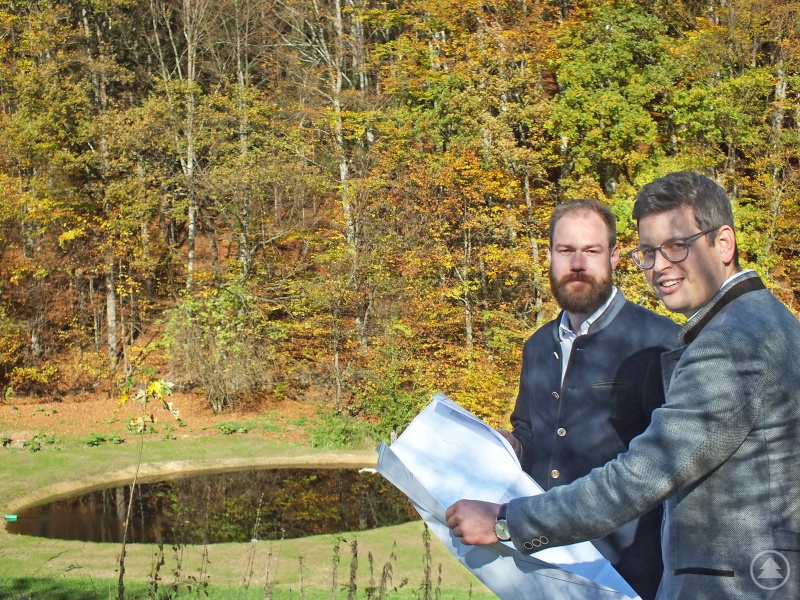 Mit dem Baufortschritt – Beginn der Bauarbeiten war im August – zeigten sich Bürgermeister Martin Pichler und Ron Metzner sehr zufrieden. Der neue Weiher ist bereits angelegt worden und hat sich schon sichtbar mit Wasser gefüllt. Damit ist die Versorgung der angrenzenden Anwesen mit Löschwasser sichergestellt. Auch die Gestaltung eines neuen Bachbetts ist bereits erfolgt genauso wie das Anlegen einer durch Steine befestigten Furt im Bachlauf. Jetzt fehlt nur noch das Befestigen des erodierten Grabens durch sogenannte Steinmatratzen. Wenn die Bauarbeiten abgeschlossen sind, werden im Anschluss noch die durch den Bau beanspruchten Flächen - soweit möglich - mit bauseits bereits vorhandenen Rasenstücken beziehungsweise einheimischem Saatgut begrünt.