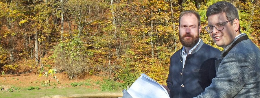 Mit dem Baufortschritt – Beginn der Bauarbeiten war im August – zeigten sich Bürgermeister Martin Pichler und Ron Metzner sehr zufrieden. Der neue Weiher ist bereits angelegt worden und hat sich schon sichtbar mit Wasser gefüllt. Damit ist die Versorgung der angrenzenden Anwesen mit Löschwasser sichergestellt. Auch die Gestaltung eines neuen Bachbetts ist bereits erfolgt genauso wie das Anlegen einer durch Steine befestigten Furt im Bachlauf. Jetzt fehlt nur noch das Befestigen des erodierten Grabens durch sogenannte Steinmatratzen. Wenn die Bauarbeiten abgeschlossen sind, werden im Anschluss noch die durch den Bau beanspruchten Flächen - soweit möglich - mit bauseits bereits vorhandenen Rasenstücken beziehungsweise einheimischem Saatgut begrünt.