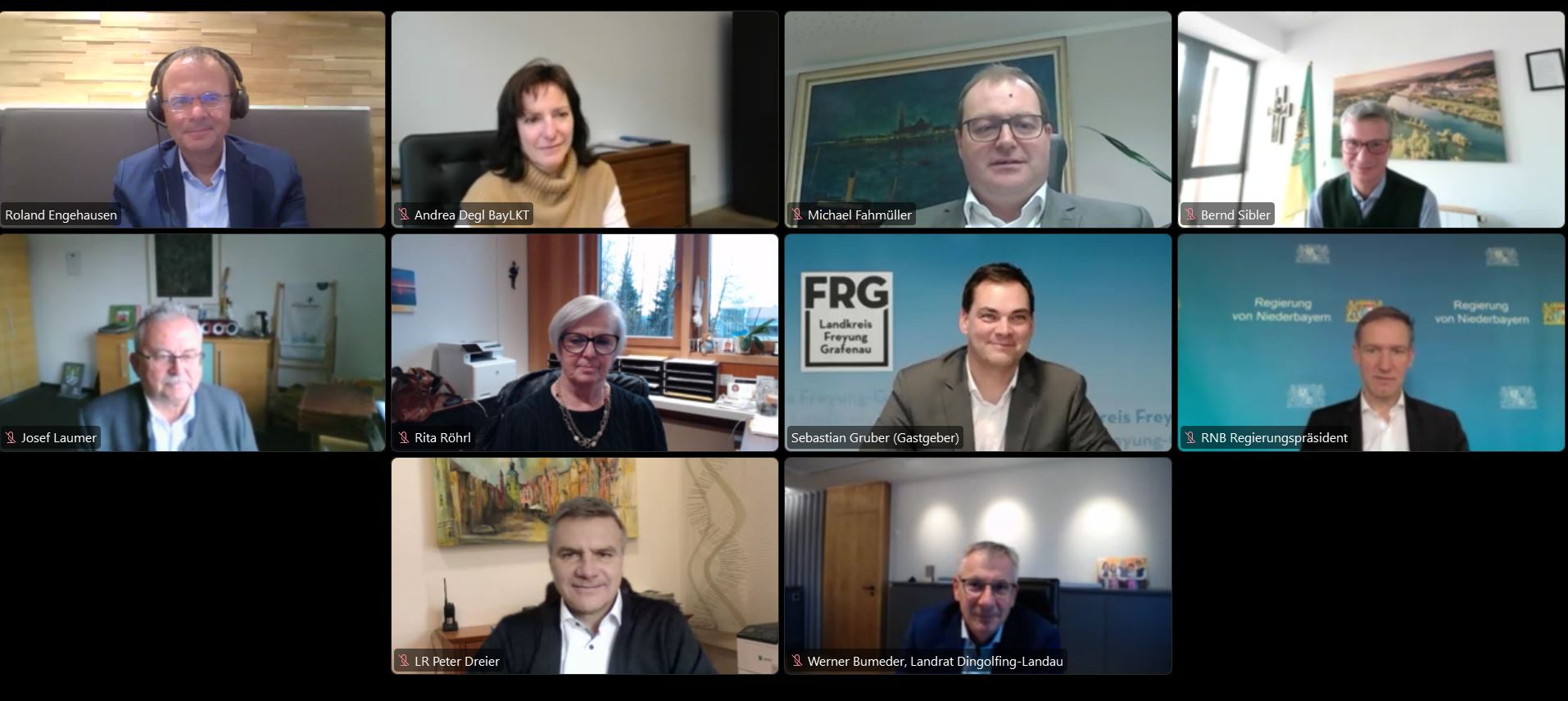 Die aktuelle Situation im Bereich der Kliniken und die Krankenhausfinanzierung standen als Hauptthemen im Mittelpunkt der virtuellen Tagung des Bezirksverbands Niederbayern des Bayerischen Landkreistages. Roland Engehausen, Geschäftsführer der Bayerischen Krankenhausgesellschaft e.V., referierte auf Einladung von Land-rat Sebastian Gruber, Vorsitzender des Bezirksverbandes Niederbayern, zu diesem Tagesordnungspunkt und stand den Teilnehmerinnen und Teilnehmern darüber hinaus als Gesprächspartner zur Verfügung. Die Bayerische Krankenhausgesellschaft e.V. ist der Zusammenschluss der Krankenhausträger und deren Spitzenverbände in Bayern. Ziel der BKG ist es, zusammen mit den Partnern im Gesundheitswesen die Leistungsfähigkeit der Krankenhäuser zu erhalten und zu verbessern sowie die Versorgung in Bayern weiterzuentwickeln. Insofern ist die BKG ein wichtiger Partner für die niederbayerischen Landkreise als Klinikenträger. „Alarmstufe ROT: Krankenhäuser in Gefahr“, mit dieser Kampagne macht die Krankenhausgesellschaft auf die aktuell teilweise existenzbedrohende Situation der Kliniken aufmerksam.