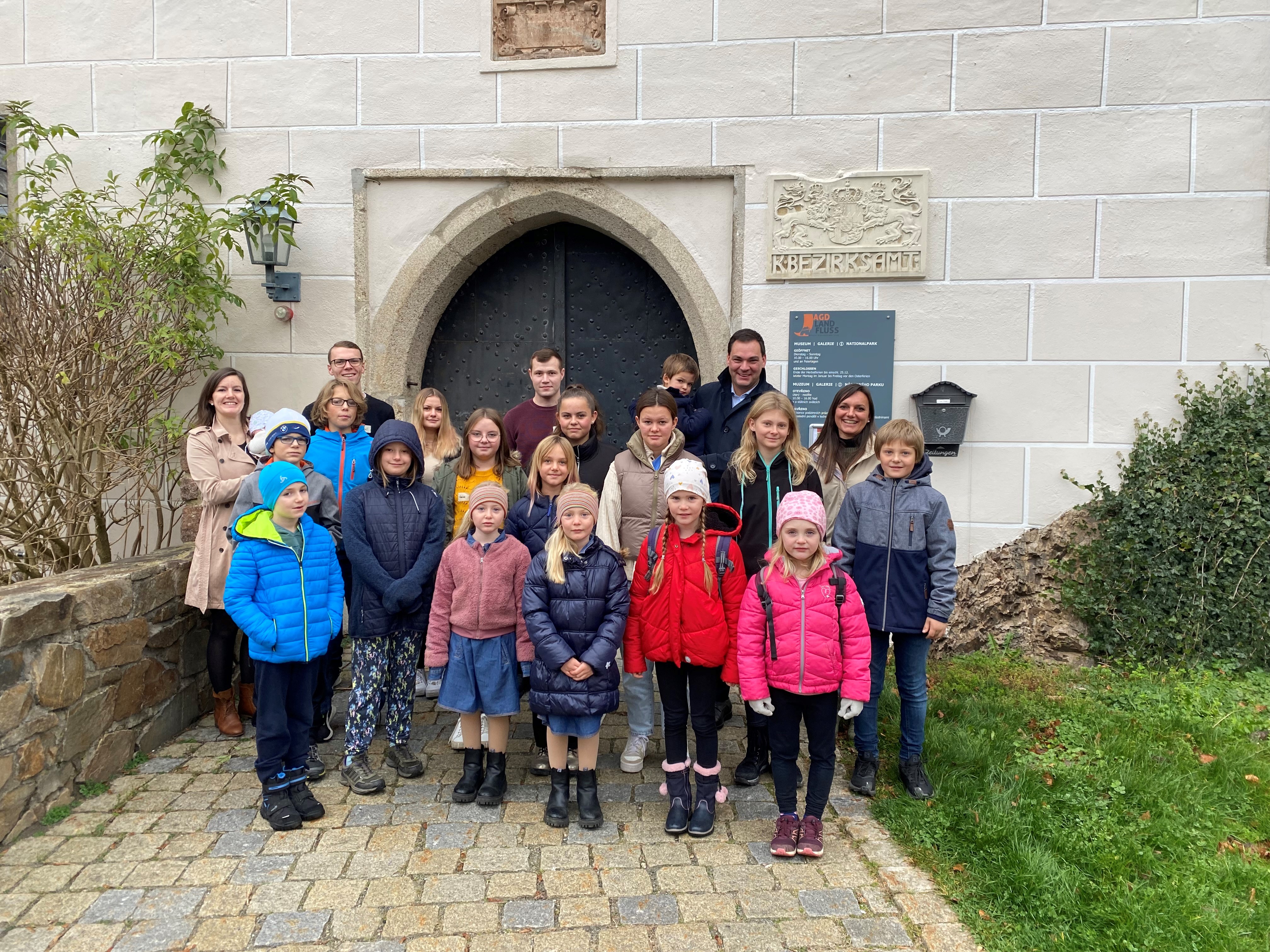 Zu einer besseren Vereinbarkeit von Familie und Beruf durften die Kinder am Buß- und Bettag mit Mama oder Papa zur Arbeit ins Landratsamt Freyung-Grafenau kommen. Auch Landrat Sebastian Gruber (hinten rechts) hatte seinen Sohn mit dabei. Bei den Kleinen und Großen kam der Tag gut an.
