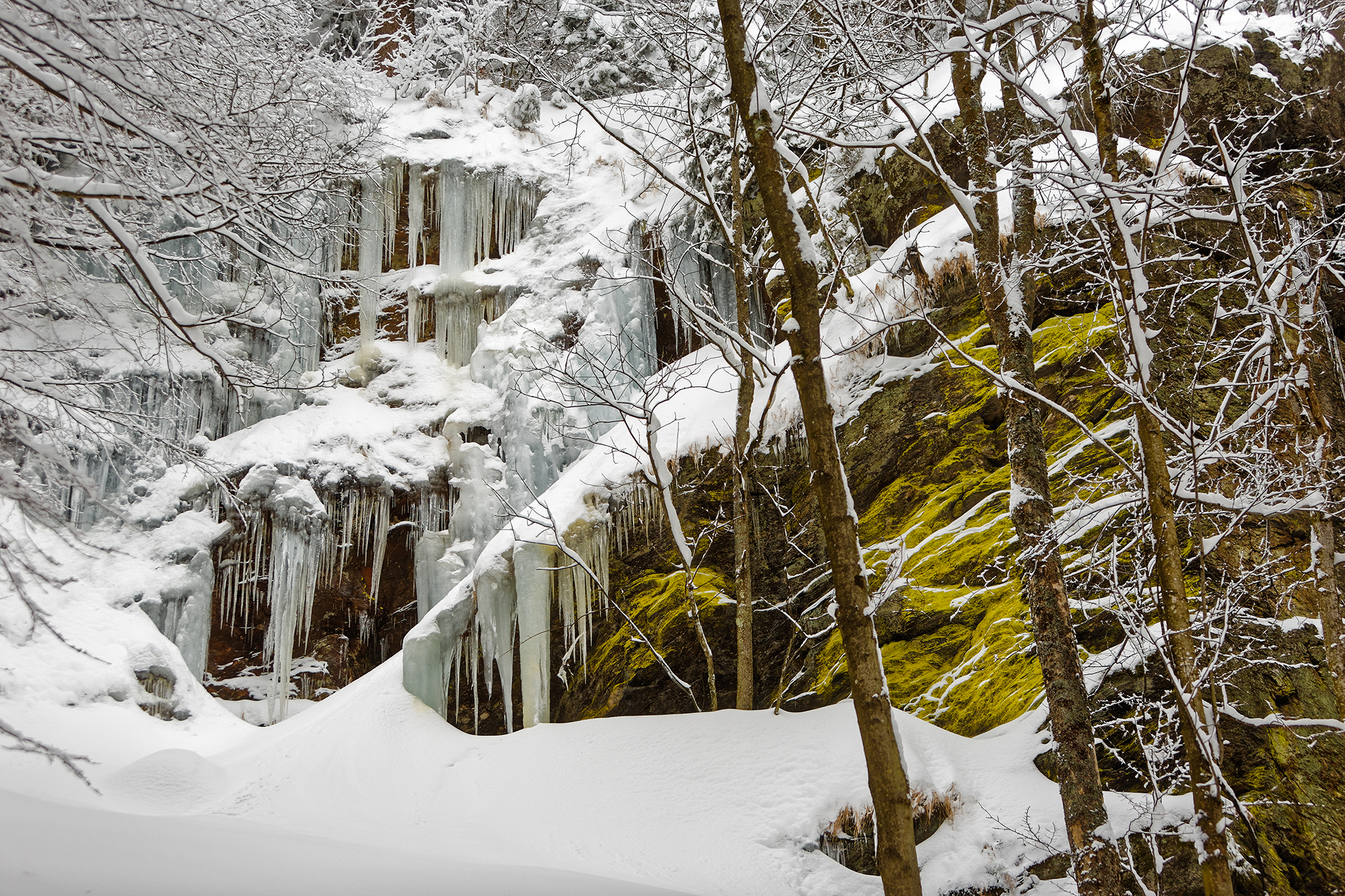 Im Winter bieten die Eiszapfen in der Höllbachschlucht ein einmaliges Erlebnis