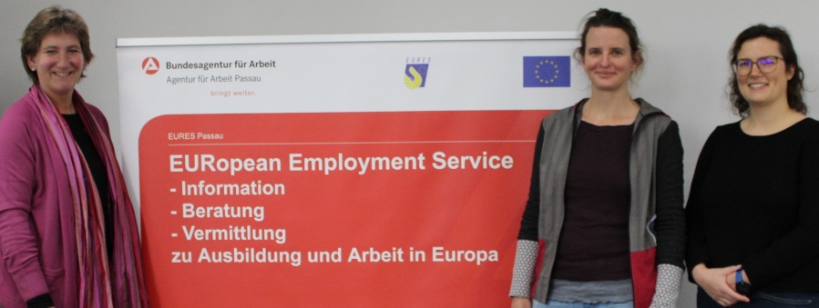 Christine Reitberger (EURES-Line-Managerin und Teamleiterin Berufsberatung der Agentur für Arbeit Passau), Brita Betz (Arbeitsvermittlerin und EURES-Beraterin der Agentur für Arbeit Passau), Luise Haack (iStudi-Coach an der Universität Passau)
