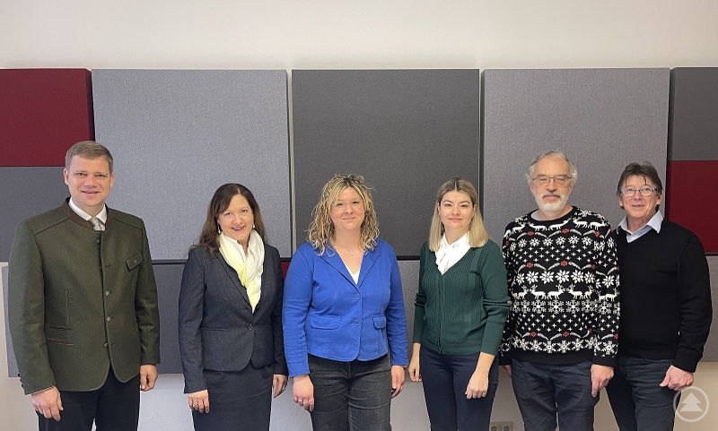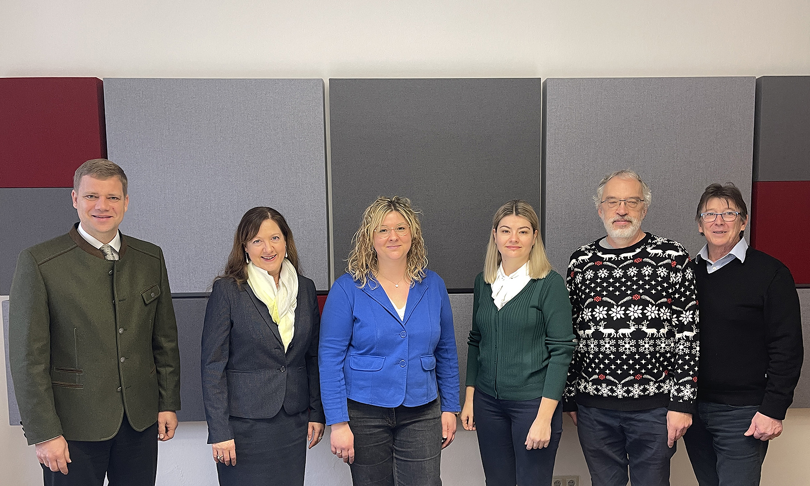 Bezirkstagspräsident Dr. Olaf Heinrich, Claudia Holzner (Psychiatriekoordinatorin), Martine Pank (Krisendienst Niederbayern gGmbH), Tanja Nesterenko (Fachliche Leitung), Peter Weiß (Sozialteam) und Jürgen Handschuch (Landshuter Netzwerk)