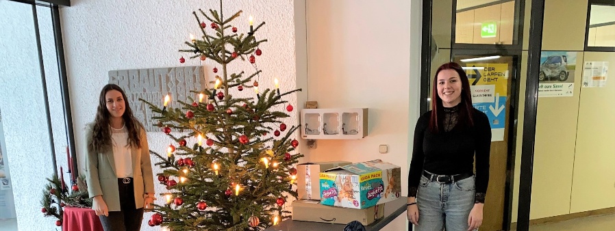 Nicht nur beim Kleider- und Spielzeugsammeln waren Sophia Fenzl (links) und Romy Eiler im Rahmen der Adventsaktion erfolgreich. Auch “Challenges” wie „mit Fahrgemeinschaft oder ÖPNV zur Weihnachtsfeier“ wurden von ihren Kolleginnen und Kollegen am Landratsamt gut angenommen.