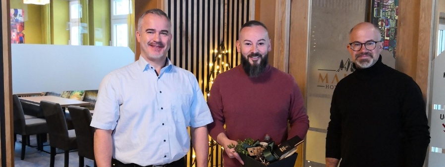Eröffnung des Familienhotels „Das Maiers Hotel - Resort“ v.l. Bürgermeister von Bayerisch Eisenstein Michael Herzog, Hotelier Robert Maier jun. und Geschäftsführer der Ferienregion Nationalpark Bayerischer Wald GmbH