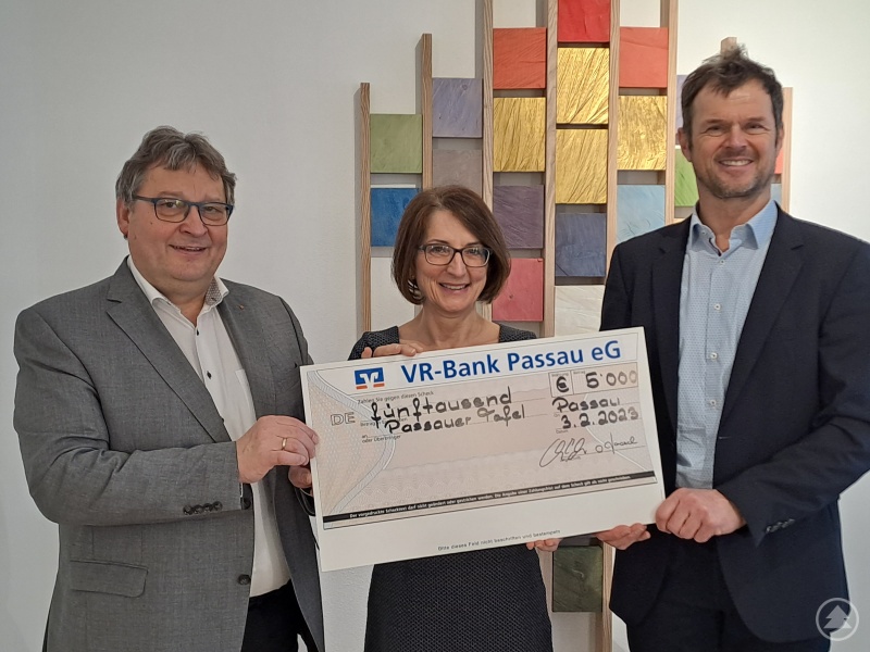 Ein Zeichen regionaler Hilfe. 5.000 Euro für die Caritas-Tafel Passau übergaben die Geschäftsführung Andrea Jarosch und Christian Eder an Caritasvorstand Diakon Konrad Niederländer
