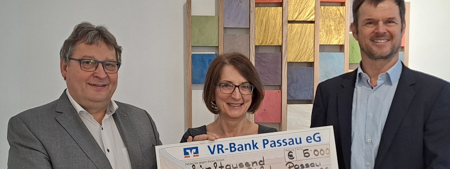 Ein Zeichen regionaler Hilfe. 5.000 Euro für die Caritas-Tafel Passau übergaben die Geschäftsführung Andrea Jarosch und Christian Eder an Caritasvorstand Diakon Konrad Niederländer