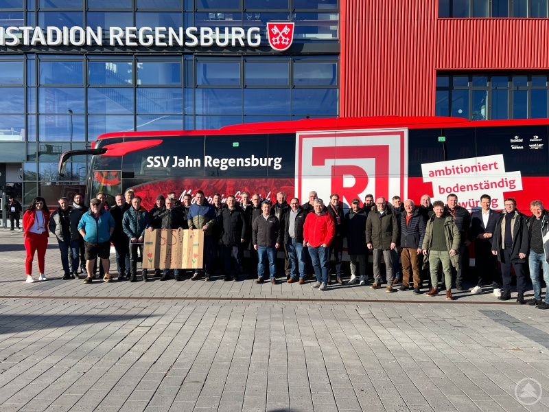 Zweitligist SSV Jahn Regensburg ist der einzige ostbayerische Vertreter im deutschen Profifußball. So war der „Jahn" jüngst Gastgeber der ersten gemeinsamen Unternehmerfahrt der Landkreise Freyung-Grafenau und Deggendorf nach der Corona-Pandemie. Auf Einladung der Landräte Sebastian Gruber und Bernd Sibler haben 30 Unternehmer und Führungskräfte aus beiden Landkreisen an der von den Regionalmanagements organisierten Tagesfahrt teilgenommen. Im Fokus standen dabei sowohl der landkreisübergreifende Austausch zwischen den Unternehmensverantwortlichen, als auch die Wirkweise des SSV Jahn als Wirtschafts- und Gesellschaftsfaktor in der Region.