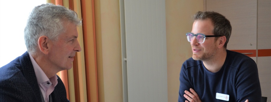 MdL Prof. Dr. Gerhard Waschler (l.) im Austausch mit Dr. Benedikt Steif,