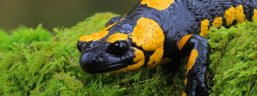 Das Tier ist vorwiegend bei Dunkelheit unterwegs, man kann es aber auch am Tag antreffen, hauptsächlich bei Regen oder an kühlen Morgen- und Abendstunden. Im Volksmund wird es treffender Weise auch „Regenmännchen“ genannt. In Deutschland steht es unter Naturschutz und darf daher nicht gefangen, verletzt oder gar umgebracht werden, in Bayern ist es vorzugsweise als „gefährdet“ eingestuft. Seit einigen Jahren breitet sich ein eingeschleppter gefährlicher Hautpilz aus, der in mancher Gegend zu Massensterben des Tieres geführt hat und mit dem Namen „Salamanderfresser“ kursiert. Der Lurch wird gut 20 cm lang, sein leuchtendes Fleckenkleid dient der Abschreckung von Fressfeinden, diese Warntracht macht ihn zu einem unverwechselbaren Tier unserer Heimat. Interessant ist, dass jedes Exemplar seine eigene, kreative Körperzeichnung hat. Wir finden den Feuersalamander schon in sehr früher Mythologie, in der er als Symbol für das Element „Feuer“ stand. Ein interessanter Bezug zu seinem Namen geht auf den Aberglauben zurück, dass der Salamander Feuer überleben und sein giftiges Hautsekret heiße Glut löschen würde. Im Mittelalter schrieb man ihm satanische Wirkung zu, da er „Trinkwasser vergiften“, und der „bloße Hauch seines Atems“ Menschen töten würde. Schon die alten Römer hätten vor dem Tier gewarnt, weil es mit seinem versprühten Gift „ganze Völker“ vernichten könne. Seit längerer Zeit ist aber bekannt, dass sein Hautgift für den Menschen harmlos ist und nur manchen Feindtieren wirklich Schaden zufügen kann. Die Fortpflanzung der Salamander unterscheidet sich von anderen Amphibien dadurch, dass die Weibchen lebend gebären, indem sie kiementragende Larven ins Wasser absetzen. Der Feuersalamander gehört zu den schönsten einheimischen Lurchen oder Kleintieren überhaupt.