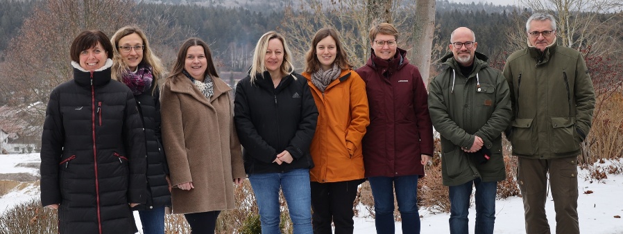 Die Mitglieder der Arbeitsgruppe freuen sich auf den regelmäßigen Austausch (v. l.n.r.: Karin Fuchs, Sabine Lemberger, Theresa Resch, Stefanie Ranzinger (FNBW), Julia Zink und Teresa Schreib (Nationalparkverwaltung Bayerischer Wald), Robert Kürzinger (Geschäftsführer FNBW), Kurt Joachimsthaler (FNBW)