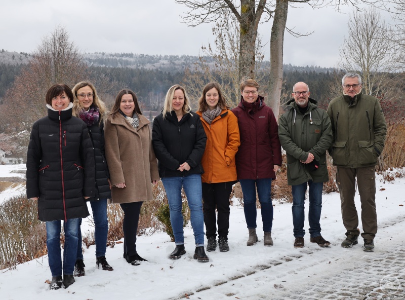 Die Mitglieder der Arbeitsgruppe freuen sich auf den regelmäßigen Austausch (v. l.n.r.: Karin Fuchs, Sabine Lemberger, Theresa Resch, Stefanie Ranzinger (FNBW), Julia Zink und Teresa Schreib (Nationalparkverwaltung Bayerischer Wald), Robert Kürzinger (Geschäftsführer FNBW), Kurt Joachimsthaler (FNBW)