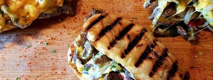 Das fertige Topping gibst du jetzt auf ein Backblech und verteilst darauf deinen Käse. Ab in den Ofen damit, bis der Käse schön zerlaufen ist. Währenddessen brätst du dein mit Kräuterbutter bestrichenes Baguette von beiden Seiten an (Dafür eignet sich ein Kontaktgrill hervorragend), scheidest dein Steak in dünne Streifen und verteilst es auf deinem Baguette.