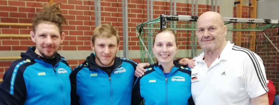 Das kleine erfolgreiche Team des SVM mit v.l. Patrick Feilmeier, Christian Graf, Betreuerin Lisa Maierhofer und Kampf-richter Konrad Rankl.