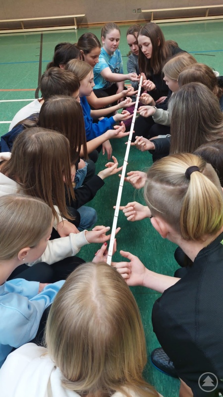 Organisiert hatte den Workshop die Klassenleiterin Frau Sandra Dankesreiter, welche die Arbeit zum Thema Gewaltprävention und vor allem den Selbstschutz für Mädchen für sehr wichtig und sinnvoll erachtet. In einer wichtigen und interessanten Einführung wurde unter anderem aufgezeigt, dass schon selbstbewusstes Auftreten und die richtige Körperhaltung vermeiden können, dass man zum Opfer eines Angreifers wird. Danach folgten Übungen für die Klassengemeinschaft nach dem Motto: Team heißt nicht: „Toll, ein anderer macht’s“. Eine zunächst einfach aussehende Übung erwies sich als schwierige Hürde für gemeinschaftliches Handeln. Sie wurde jedoch nach einigen Tipps und Versuchen sehr gut gemeistert - eine wertvolle Erfahrung als Gemeinschaft und Team.
