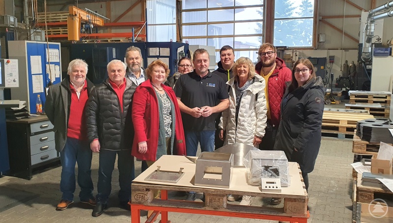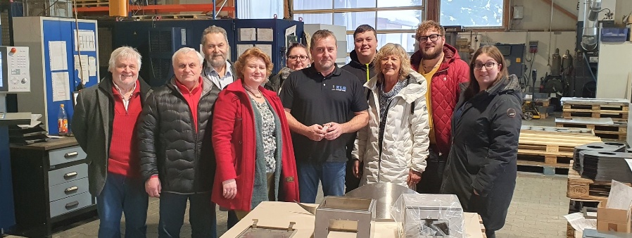 „Konstruieren, Lasern und Biegen, kurz KLB, beschreibt eigentlich bereits den Großteil unserer Tätigkeitsfelder“, schilderte Geschäftsführer Guido Träger den Mitgliedern des SPD Kreisvorstandes und Rita Hagl-Kehl den Schwerpunkt der Arbeit. Seit mittlerweile zehn Jahren produziere man in Schönanger und beschäftige inzwischen über 25 Mitarbeiter in Fertigung und Vertrieb. Bei einem kurzen Rundgang durch die Produktionshallen zeigte Guido Träger dann die verarbeiteten Materialien sowie die verschiedenen Produktionstechniken. „Wir verarbeiten Stahl, Edelstahl, Aluminium, Kupfer und Messing in allen Ausführungen in erster Linie für gewerbliche, aber auch für private Kunden. Als besonderen Service bieten wir auch Einzelteil- und Baugruppenmontagen an, bei welchen zugekaufte Serienteile mit unseren Bauteilen zusammengesetzt und angepasst werden“, so Träger weiter.