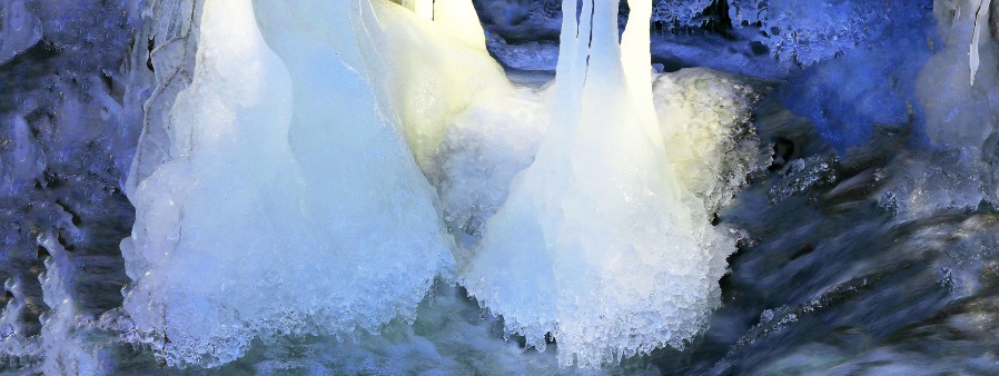 Die im Foto abgebildeten Eisfiguren sehen wie Glocken aus und hängen an dünnen Strauchzweigen, leicht ins Wildwasser getaucht sind. Sie sind im Landschaftsschutzgebiet der naturromantischen Saußbachklamm nahe Waldkirchen entstanden. Das Bild habe ich am 9. Februar, kurz vor der Mittagszeit, aufgenommen, gerade als die aufsteigende Sonne durch die Baumäste blinzelte und ihre Strahlen fleckenhaft auf die Eisgebilde warf. Wie leuchtende Lampions wirkten diese im Bachbett, das an anderen Stellen noch im Schatten lag. Winterliche Kostbarkeiten wie diese sind als Naturschätze zu sehen, die nicht jedes Jahr zur kalten Jahreszeit anzutreffen sind und keine allzu lange Lebensdauer haben. Gefrorenes Wasser erscheint hier wie eine „klingende Sinfonie“, wie eine kleine Wunderwelt, in der „Väterchen Frost“ bei knackigen Temperaturen deutlich seine Handschrift hinterlassen hat.