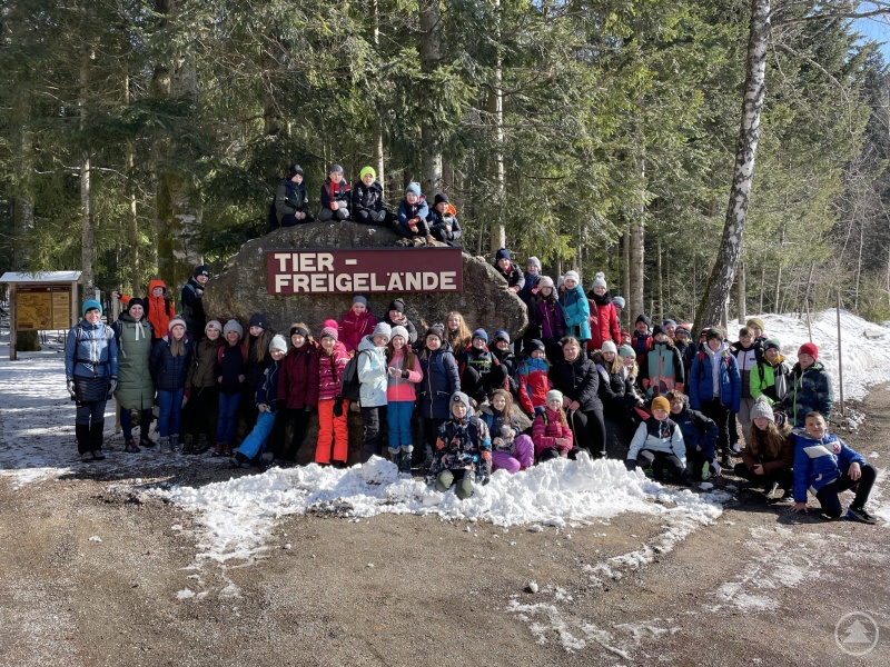 Die Fünftklässler der Realschule Grafenau erlebten Biologie-Unterricht hautnah im Tierfreigehege des Nationalparks.
