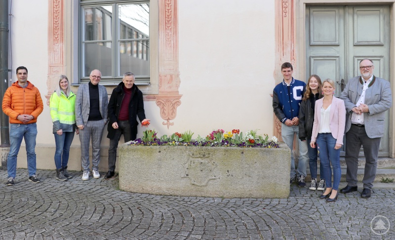 Konkret hat der Bauhof drei vorhandene Sitzgelegenheiten aufbereitet sowie drei zusätzliche Holzbänke gebaut und aufgestellt. Die Stadtgärtnerei pflanzte zum einen in den Pflanzbereichen an der Neubaufassade Frühjahrsblumen an. Zum anderen wurden an den anderen drei Hofseiten vier Töpfe mit Säulen-Hainbuchen platziert. Zur Abrundung der Maßnahme erfolgte schließlich noch die Bepflanzung eines vorhandenen Granittrogs. Die Kosten belaufen sich insgesamt auf etwa 8000 Euro. Malerarbeiten in den Flurgeschossen hatte der Bauhof schon zuvor im Rahmen eines separaten Auftrags ausgeführt.