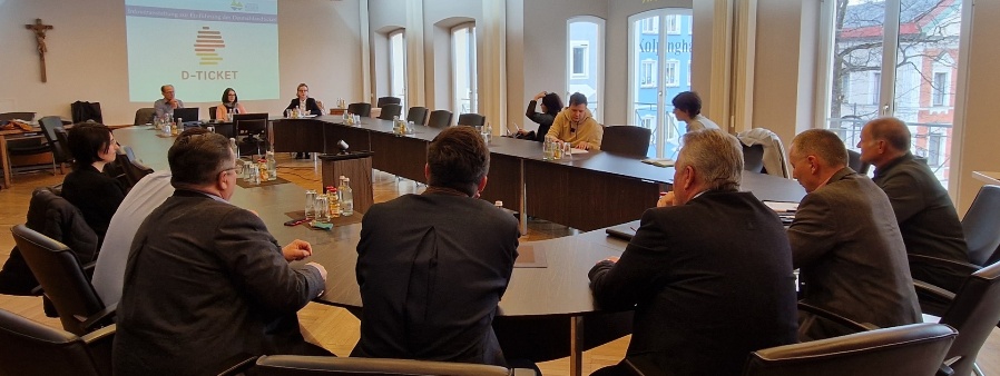 Vom 1. Mai an gilt das Deutschlandticket, kaufen kann man es bereits ab dem 3. April. Wie sich das Ticket auf die Landkreisgemeinden in Bezug auf die Schülerbeförderung auswirkt, konnte das Landratsamt Regen am Donnerstag, 23. März bei einer Infoveranstaltung erläutern. Teresa Seifert aus dem Sachgebiet Schülerbeförderung und Günther Sebald vom Team Mobilitätsmanagement informierten im Sitzungssaal der Stadt Regen einige Bürgermeister sowie Mitarbeiter und Mitarbeiterinnen der Landkreisgemeinden über die Lösungsansätze des Landkreises bei der Einführung und Umsetzung des Deutschlandtickets.