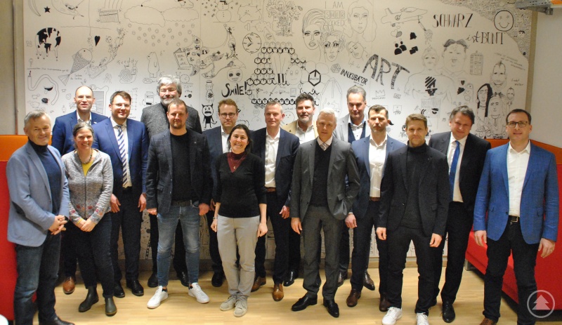 Der Beirat der Sponsoren des INN.KUBATOR (v.l. Werner Lang, Heidi Bartl (beide Stadt Passau), Dr. Günther Hribek (Universität Passau), Otmar Knaus (Kreisverband der Volksbanken Raiffeisenbanken in Stadt und Landkreis Passau), Rudolf Ramelsberger (Kapfinger Immobilien), Alexander von Fabris (Passauer Neue Presse), Dr. Christoph Schöndorfer (Schwarzmüller GmbH), Mara Schneider (INN.KUBATOR Passau), Gerhard Steinhuber (4process AG), Roland Gruber (Landkreis Passau), Gernot Hein (ZF Friedrichshafen AG), Alexander Schreiner (IHK Niederbayern), Gerhard Schwarz (Knorr Bremse AG), Klaus Neumeier (Sumida AG), Dr. Alexander Wisspeintner (Micro Epsilon GmbH), Prof. Dr. Jan H. Schumann (Universität Passau))