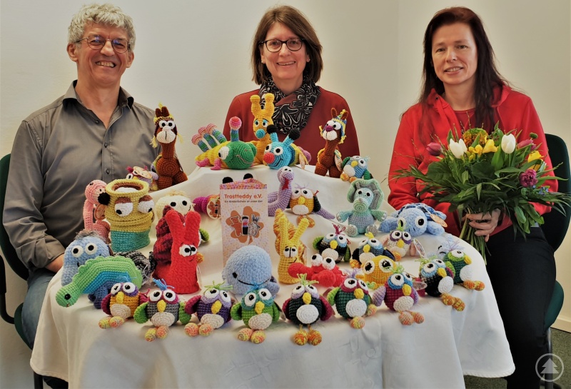 Anja Wurm überraschte das Team der Beratung für Kinder, Jugendliche und Eltern der Caritas in Passau mit den selbst gefertigten Trosttieren bereits zum zweiten Mal. Anja Wurm engagiert sich ehrenamtlich im Verein Trostteddy e. V. Sie strickt, häkelt, näht Trosttiere für psychisch belastete und kranke Kinder. Die „Trösterchen“ helfen, begleiten und beruhigen Kinder. Bei den betroffenen Kindern bewirken diese oft kleine Wunder, so die Erfahrung des Leitungsteams der Beratungsstelle.