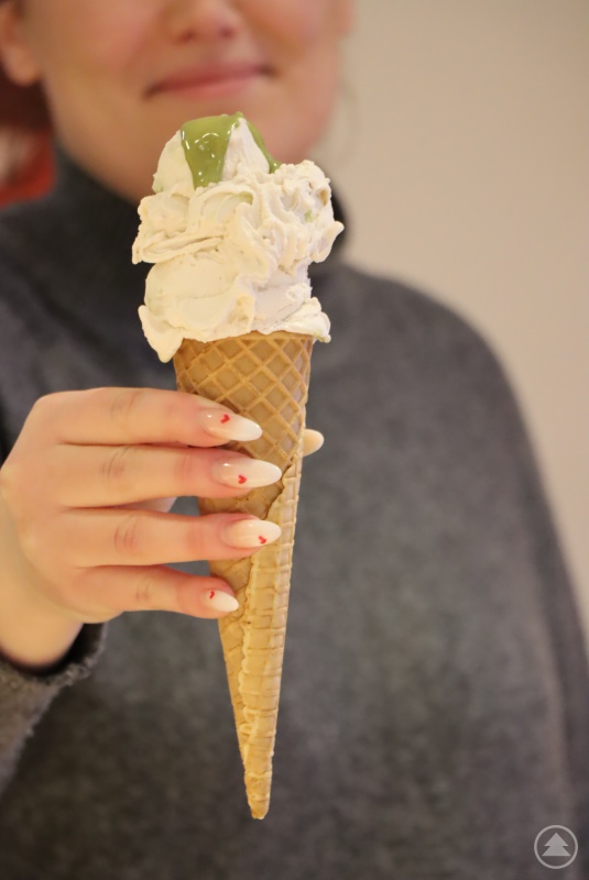 Und wie mundet es? „Es ist ein richtig leckeres, leichtes Nusseis“, findet Claudio. „Viel helles Braun, grüne und rote Nuancen, genau wie der Frühling vor der Haustür.“ „Der Geschmack erinnert mich definitiv an den Wald“, findet seine Tochter Annalaura. Und auch die ersten Kunden sind begeistert.