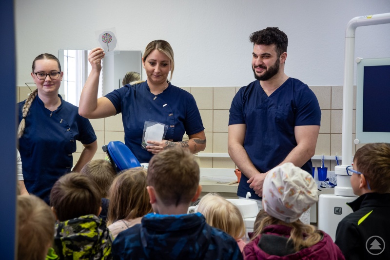 Tamara Bauer den Kindern zu Beginn die verschiedenen Geräte und Behandlungsstühle in der Praxis. Dabei betonte sie, dass man keine Angst vor dem Zahnarzt haben muss und dass regelmäßige Kontrollen dazu beitragen können, größere Probleme zu vermeiden. Die Kinder erhielten die Möglichkeit, sich die Funktionen eines Bohrers, Absaugers und die Bewegungen eines Behandlungsstuhls sowie die Instrumente anzusehen, um beim nächsten Zahnarztbesuch ein Gefühl für den Ablauf zu bekommen.