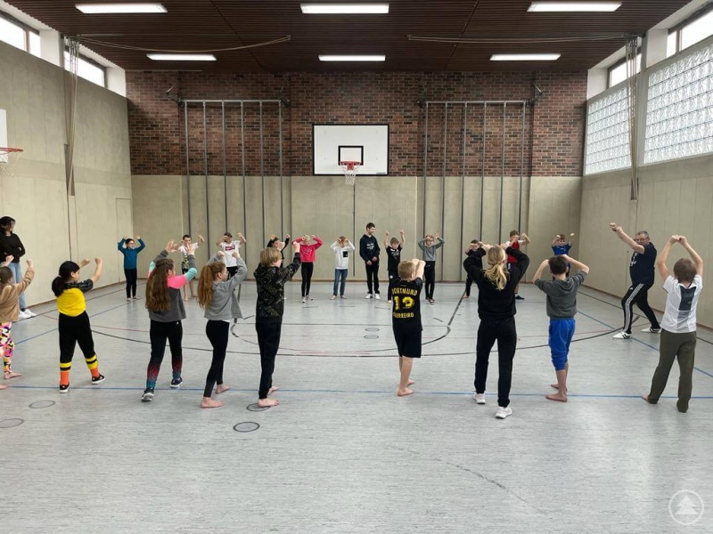 Viertklässler üben Selbstschutztechniken angeleitet von Paul Gruber