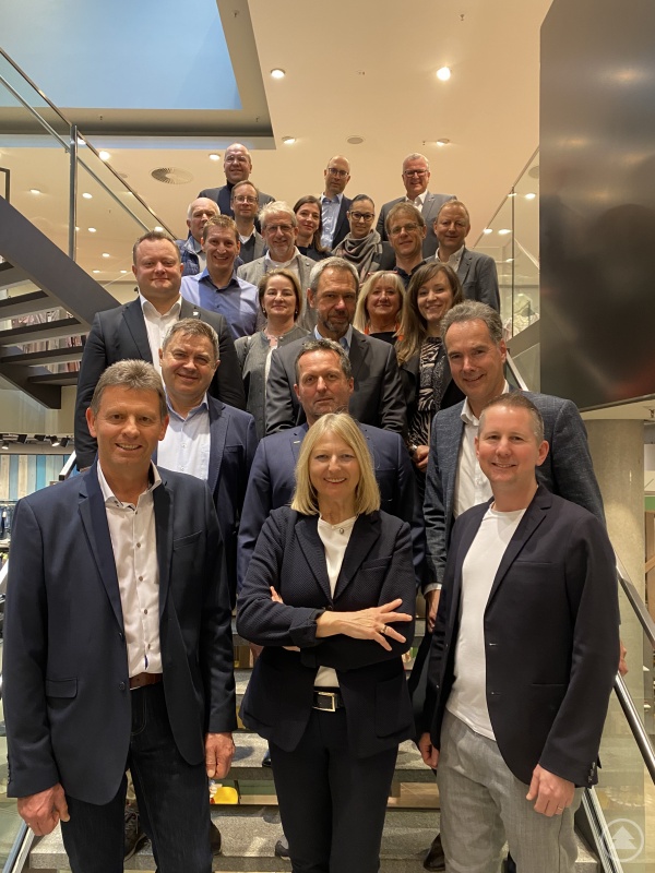 Die Mitglieder des IHK-Gremiums Freyung-Grafenau um Vorsitzende Elisabeth Hintermann (vorne Mitte), ihre Stellvertreter Norbert Peter (links) und Johannes Huber (rechts) sowie IHK-Hauptgeschäftsführer Alexander Schreiner (2. Reihe rechts) diskutierten über die aktuellen Herausforderungen für die regionale Wirtschaft.