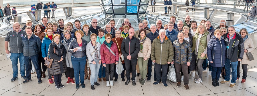 Gruppenbild gemeinsam mit Rita Hagl-Kehl, SPD-Bundestagsabgeordnete, in der Kuppel des Reichstagsgebäudes.