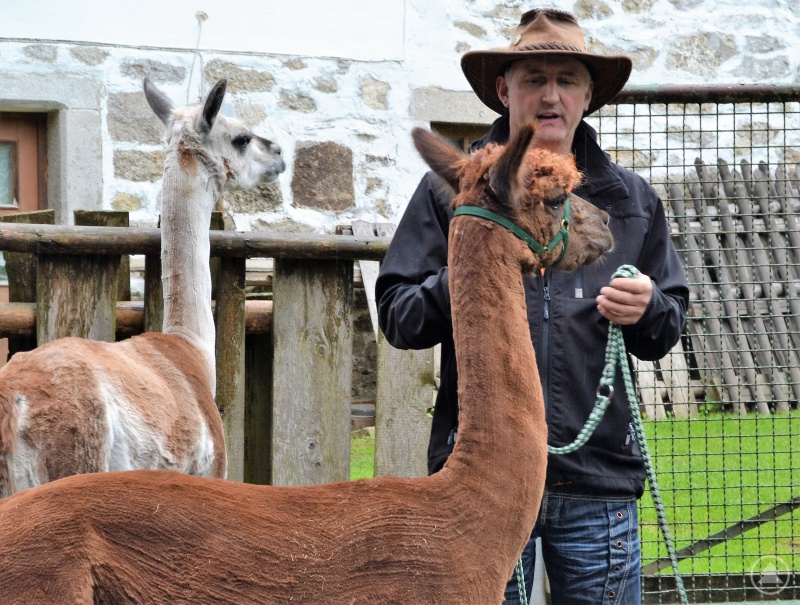 Jeder kann daran teilnehmen. Zu uns kommen Einheimische und Touristen, Kindergärten und Schulklassen. Wir wandern dann von unserem Hof aus in der wunderschönen Landschaft herum. Die Alpakas werden an der Leine geführt. Das ist gerade im sozialtherapeutischen Bereich von enormer Bedeutung. Menschen mit physischem oder psychischem Handicap erleben hier eine starke emotionale Bindung. Sie öffnen sich, sie gewinnen an Selbstwertgefühl. Und umgekehrt merkt man, wie die Alpakas sich von Minute zu Minute ihren Begleitern immer mehr annähern, eine gewisse Empathie für deren Situation entwickeln. Immer wieder faszinierend zu sehen. Wir bekommen da viele positive Rückmeldungen bzw. schauen in glückliche Augen. Das ist viel wert.