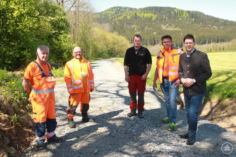 Anrainer Michael Loibl hat hier landwirtschaftliche Flächen. Mit schwerem Bulldog kommt man zwar fast überall durch. Aber selbst für ihn war es schon ein kurviger Slalom um weit herausragende Gullydeckel herum, um sich an deren scharfen Kanten keine teuren Reifen aufzuschlitzen. Annähernd 600 Meter geht es hier ab der Deggendorfer Straße recht steil bergab. Deshalb hatten es besonders Regenereignisse mittlerweile nötig gemacht, da mal wieder „kommunalen Kies“ für benötigten Schotter in die Hand zu nehmen. Stolze 400 Tonnen Mineralbeton wurden verbaut. Aber, so Bürgermeister Martin Pichler: „Wir haben schon sehr drauf geachtet, die Maßnahme auch finanziell im Rahmen zu halten.“ Die Arbeit selbst erledigte das Bauhof-Team unter Leitung von Jürgen Murr. Christian Poschinger und Günter Greipl waren da unter anderem am Werk, um auch die problemlose Zufahrt für die Wartung des Kanals und eines Regeneinleitungsbeckens selbst per Auto wieder zu erreichen. Ein Dachprofil, geräumter Graben und frei gelegte Abflüsse sorgen dafür, dass nun nicht mehr am unteren Ende „Acker-Schwemmland“ entsteht. Da Günter Greipl auch als Gemeinderat gewählt ist, kann er im Gremium dann auch demnächst persönlich Vollzug melden.