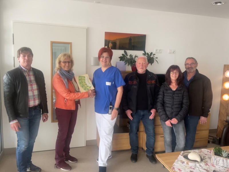Frau Dr. Martina Berger (3. v.l.), Leitende Oberärztin der Palliativstation am Krankenhaus Freyung, nimmt mit großer Freude die erfreuliche Spendensumme entgegen.