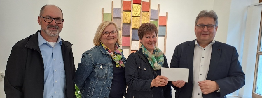 Der Pfarrgemeinderat Mariakirchen überreicht Diakon Konrad Niederländer (re.) 715 Euro für den Bischof-Eder-Fonds. V.li. Fritz Sturm, Sieglinde Salzberger, die Vorsitzende Kordula Schernhammer.