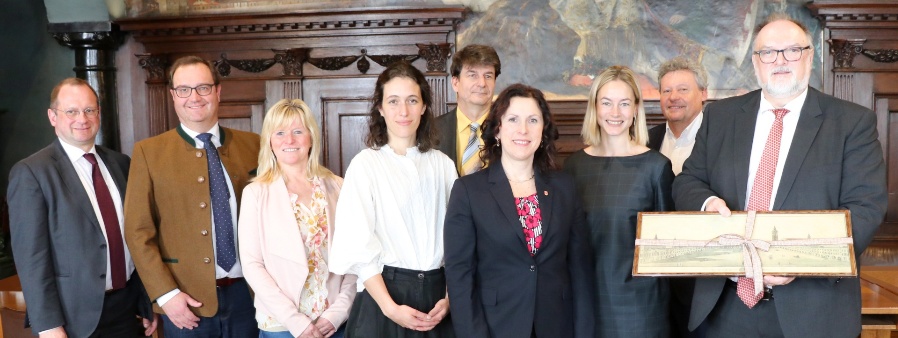 Kulturhauptstadt Budweis 2028 – das ist nun das gemeinsame Ziel von Oberbürgermeister Jürgen Dupper (von rechts), Kulturamtsleiter Horst Matschiner, Karolina Rachačová vom Projektteam, Oberbürgermeisterin Dr. Ing. Dagmar Škodová Parmová mit ihrem Ehemann Mgr. Roman Škoda, Anna Hořejší vom Projektteam, Hana Jungwirth und Roland Pregler von der Bayerisch-Böhmischen Gesellschaft – Freundeskreis Passau-České Budějovice sowie Kulturreferent Dr. Bernhard Forster.