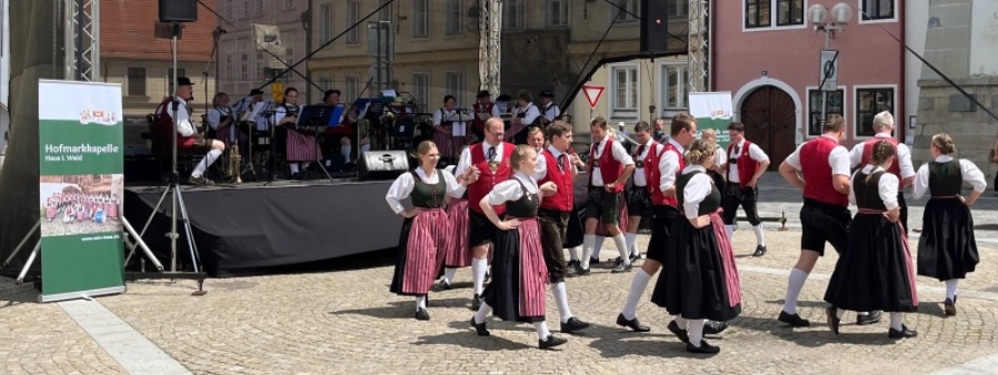Nach dem Auftritt der südböhmischen Blaskapelle "Třeboňer 12" am Samstagvormittag folgte ein Konzert der Hofmarkkapelle des Musik- und Heimatvereins Haus i. Wald ergänzt um Einlagen der Volkstanzgruppe des Vereins. Musiker, Sänger und Tänzer verstanden es dabei gleichermaßen das Publikum zu begeistern.