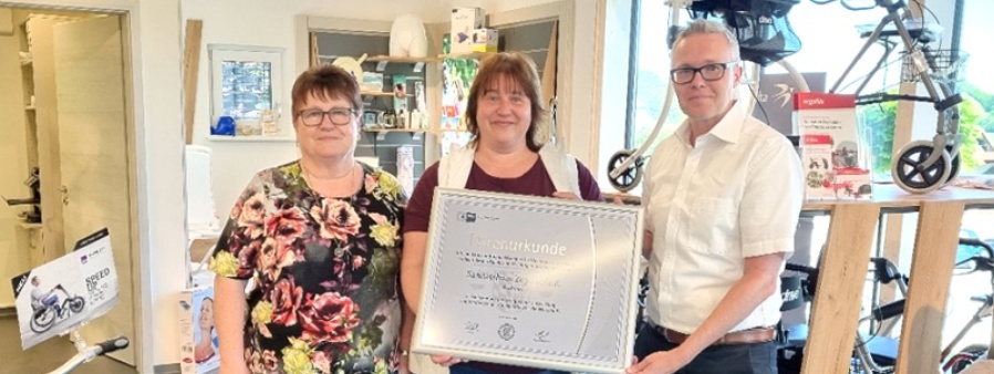 Seit einem Vierteljahrhundert dreht sich im Sanitätshaus Zaglauer in Grafenau alles um das Thema Gesundheit. Gegründet im Jahr 1998 von der heutigen Seniorchefin Sieglinde Zaglauer und ihrer Tochter Sonja Zaglauer-Segl, ist das Unternehmen zu einem modernen Dienstleistungsbetrieb herangewachsen, mit einem breiten Leistungsspektrum für die Patienten und Kunden. Für die IHK Niederbayern gratulierte der Regionalbetreuer Manuel Klement dem Familienunternehmen zu dieser erfolgreichen Entwicklung sowie zu dem besonderen Jubiläum und überreichte eine Ehrenurkunde der IHK.