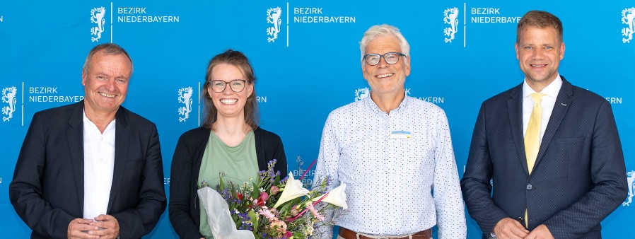 (v. l.): Prof. Manfred Spitzer, Veronika Auer, Dr. Roland Ebner, Bezirkstagspräsident Dr. Olaf Heinrich