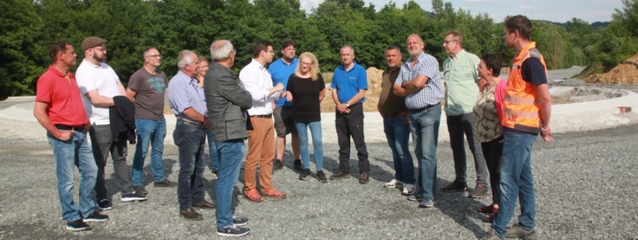 Direkt an Kreisverkehr und neuer Ohebrücke trafen sich der Marktgemeinderat Schönberg und Bauleiter Patrick Gruber (r.), damit bei Nachfragen Informationen direkt an die Bürger gelangen.