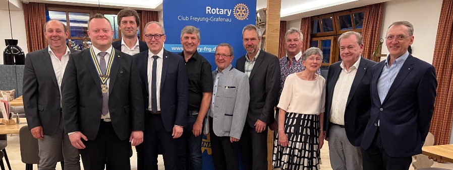 Am Montag, den 26.06.2023, fand zum Rotary-Übergabe-Meeting im Clublokal Landgasthof Euler die Wahl des neuen Präsidenten vom Rotary Club Freyung-Grafenau statt, bei der Stefan Behringer zum Präsidenten gewählt wurde. Er tritt damit die Nachfolge von Dietmar Attenbrunner an, der den Posten des Präsidenten abgab. Die Veranstaltung war ein voller Erfolg, mit dem gewünschten Ausgang und mit neuen zielstrebigen Ideen für die nahe Zukunft. Den Anfang machte der scheidene Präsident selbst.