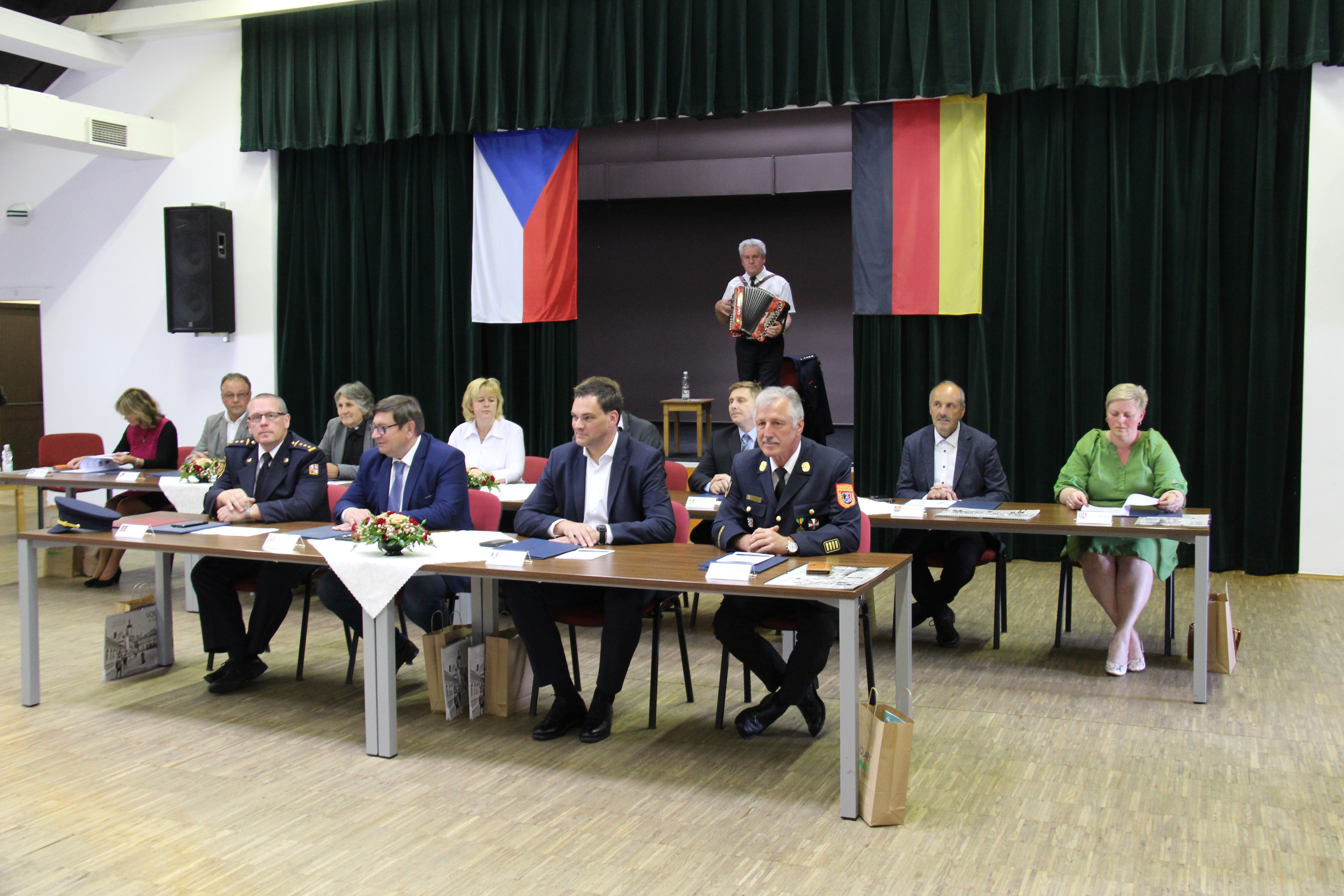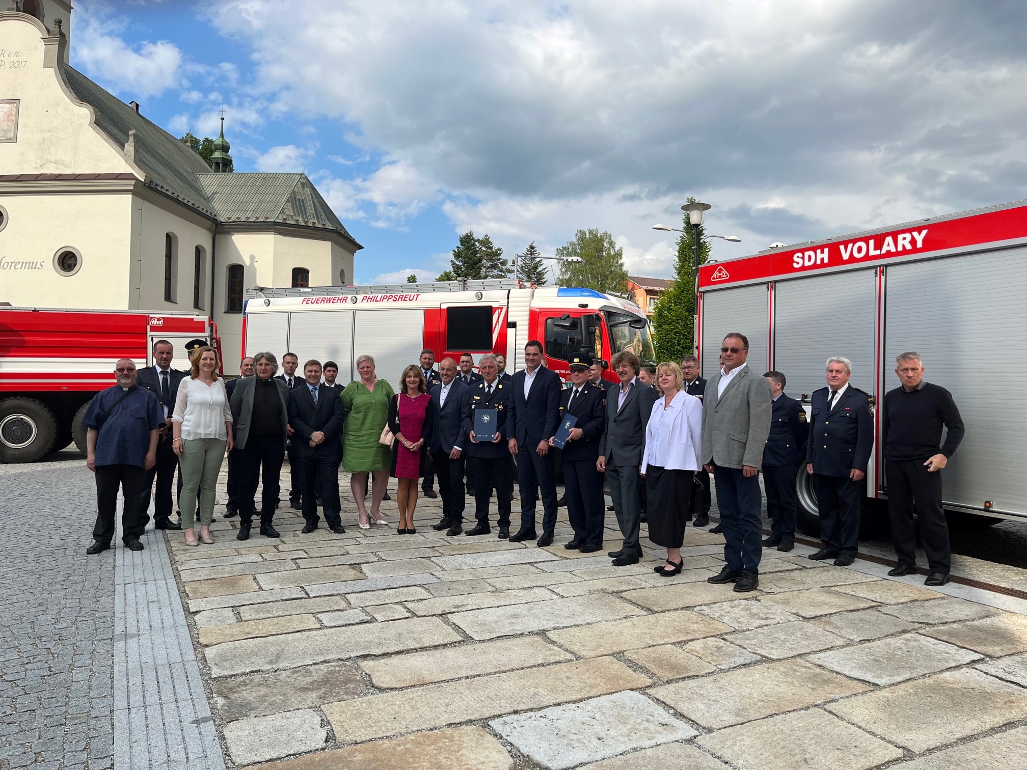 Die lang erwartete Unterzeichnung der Vereinbarung zur gegenseitigen grenzüberschreitenden Hilfeleistung und Zusammenarbeit in Sachen Brandschutz fand nun am 15. Juni 2023 im Festsaal des Rathauses der Stadt Volary (Wallern) statt. Dies war schon länger geplant, jedoch erschwerte u.a. auch die Corona-Pandemie das Vorhaben und es kam zu spürbaren zeitlichen Verzögerungen und einer nahezu dreijährigen Vorbereitungszeit. Umso größer war die Freude, dass die Feierlichkeit, zu welcher sowohl deutsche als auch tschechische Vertreter aus der Politik und seitens der Feuerwehren geladen waren, endlich stattfinden konnte.