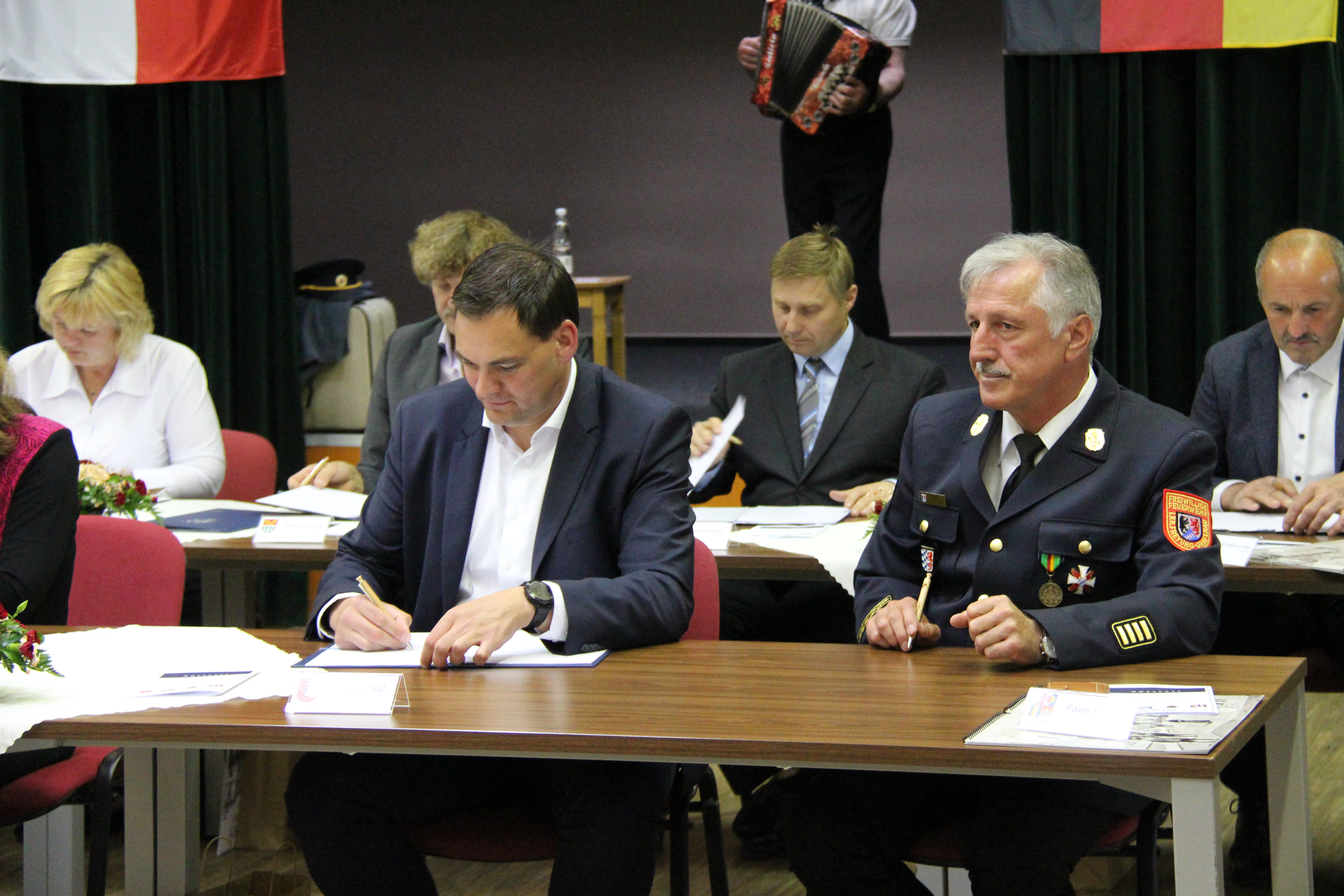 Sowohl die jeweiligen Gemeinderäte als auch der Kreistag des Landkreises Freyung-Grafenau haben dem internationalen Abkommen zugestimmt. Zusammen mit Pavel Hroch, einem Vertreter des Südböhmischen Bezirkshauptmanns, den Bürgermeistern der beteiligten Feuerwehren, Martin Svitak, dem Direktor der Bezirksfeuerwehrdirektion Südböhmen sowie Kreisbrandrat Norbert Süß unterzeichnete Landrat Sebastian Gruber diesen Vertrag. "Dieses gemeindeübergreifende Abkommen der gegenseitigen grenzüberschreitenden Unterstützung ist für unseren Landkreis von großer Bedeutung und historisch ein Novum", so Sebastian Gruber.