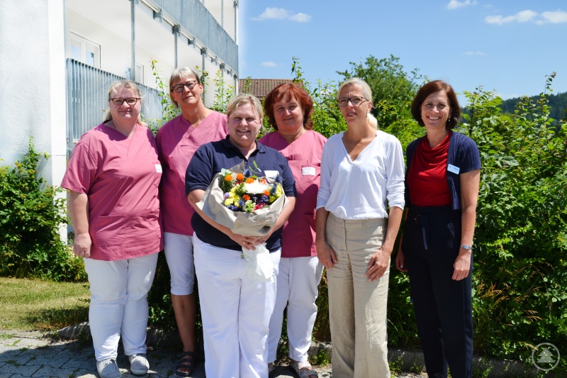 Viele Jahre war Dr. Zitzelsberger nun schon als Fachärztin für Orthopädie und Unfallchirurgie mit den Zusatzbezeichnungen Manuelle Medizin/Chirotherapie, Notfallmedizin und zertifizierte Fußchirurgin (GFFC) am MVZ Grafenau tätig. Auch den Posten als Ärztliche Leitung führte Sie bis zum Schluss mit großer Freude aus. Nun übergibt Sie die ärztliche Leitung an Dr. Simone Götz, Fachärztin für Chirurgie, Fachärztin für Visceralchirurgie mit Zusatzbezeichnung Spezielle Visceralchirurgie. Dr. Götz ist bereits seit dem 01. März 2023 am Krankenhaus Freyung als neue Chefärztin in der Abteilung Visceralchirurgie tätig. Jetzt übernimmt sie auch im MVZ Grafenau die Betreuung ambulanter Patienten mit Anliegen im Bereich der Bauch- und Thoraxchirurgie sowie Schilddrüsenerkrankungen. Zusammen mit der Personalleitung Claudia Decker sowie Arzthelferinnen der Praxis verabschiedet Sie Ihre Vorgängerin Dr. Raphaela Zitzelsberger letzte Woche mit einem großen Blumenstrauß.