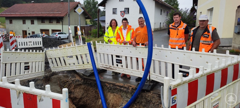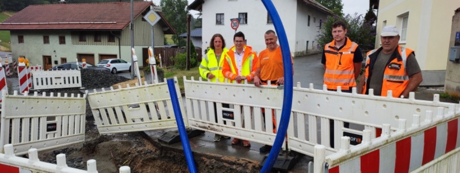 Entlang der Ortsdurchfahrt wird die alte Leitung durch eine neue und leistungsfähigere ersetzt. Auf ca. 160 Metern Länge arbeitet sich der Bauhof durch die tieferen Bereiche, die in Kürze von den „oberflächlicheren“ Arbeiten an der B 85 betroffen sind. Jetzt sorgt das zwar für gelegentliche zusätzlichen Einschränkungen an einzelnen Hauszufahrten. Dafür bittet Bürgermeister Martin Pichler für Verständnis. Aber besser jetzt das Leistungsnetz ertüchtigen als in den nächsten Jahren es zu riskieren, dass die dann neue Straße nach einem Rohrbruch wieder aufgerissen werden müsste.