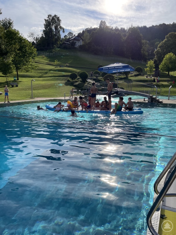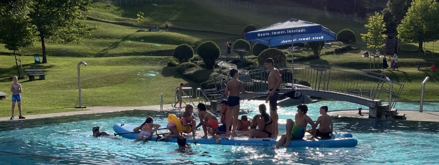 Verschiedene Mitmachangebote und Auftritte der ansässigen Vereine, coole Attraktionen wie der Aerotrimm oder das Delfin-Rodeo, eine WoidBar und das riesen SUP im Schwimmerbecken, ein Arschbomben-Wettbewerb und viele weite Highlights sorgen den ganzen Nachmittag für viel Action und gute Laune.