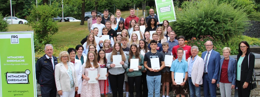 Die Idee von „Mitmachen Ehrensache!“ ist gut und erfolgreich: Jugendliche suchen sich selbstständig eine ehrenamtliche Einrichtung ihrer Wahl und engagieren sich dort innerhalb eines Schuljahres. Im Landkreis Freyung-Grafenau waren sie in diesem Zeitraum in der Seniorenbetreuung, als Ministrant, bei Feuerwehr oder BRK, im Kindergarten oder in Büchereien ehrenamtlich tätig. Beteiligt haben sich Schüler aus den Vorabschlussklassen des Staatl. Gymnasiums Freyung, der Mittelschule Freyung, der Staatl. Realschule Freyung, des Landgraf-Leuchtenberg-Gymnasiums Grafenau, der Staatl. Realschule Grafenau, der Paul-Friedl-Mittelschule Riedlhütte und der Mittelschule "Am Goldenen Steig" Röhrnbach. Die engagierten Schülerinnen und Schüler haben sich dabei Sozialkompetenzen angeeignet und sich im Rahmen des Projekts für das Gemeinwohl eingesetzt.